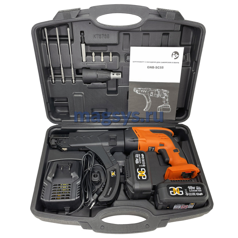 Аккумуляторный шуруповерт по гипсокартону упорного принципа GNBSC55 является эффективным инструментом для монтажа ГКЛ за счет высокой скорости вращения и упорного принципа остановки, благодаря которому каждый саморез одинаково и с высокой скоростью закручивается на выставленное заглубление. Насадка для автоматической подачи саморезов повышает производительность при монтаже гипсокартона до 50%.