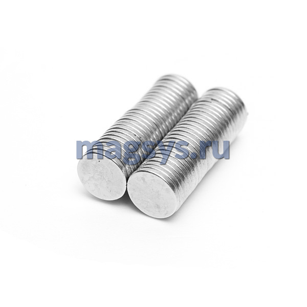 Магнит неодимовый диск 9.5х2.5 мм N35 никель по низкой цене, доставка по Москве и РФ.