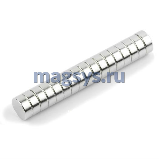 Магнит неодимовый диск 10х3 мм N35 никель по низкой цене, доставка по Москве и РФ.