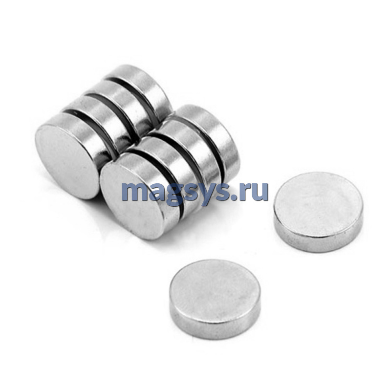 Магнит неодимовый диск 12х5 мм N35 никель по низкой цене, доставка по Москве и РФ.