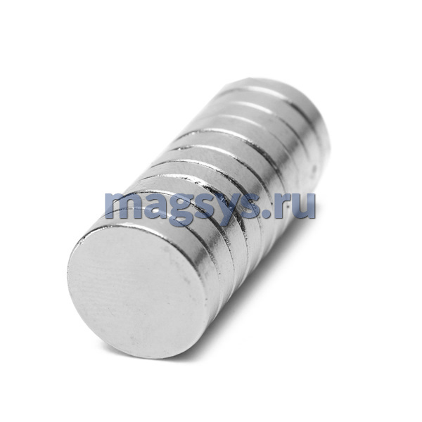 Магнит неодимовый диск 14х3 мм N35 никель по низкой цене, доставка по Москве и РФ.