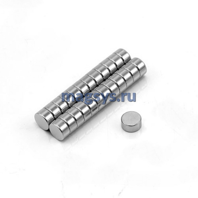 Магнит неодимовый диск 5х3 мм N35 никель по низкой цене, доставка по Москве и РФ.