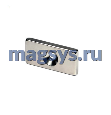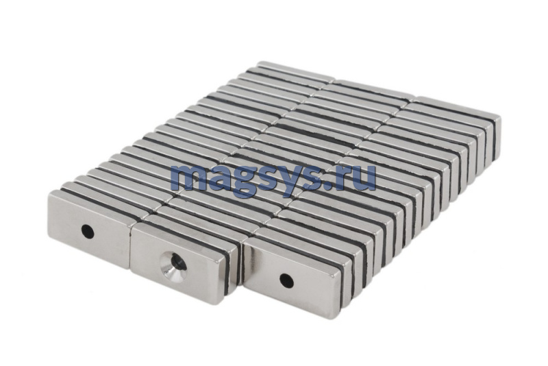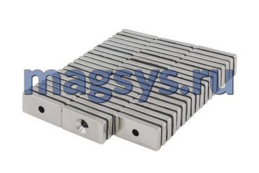 Магнит неодимовый блок 20х10х3 мм N35 никель с отверстием 3,5х6,5 мм (зенковка) по низкой цене, доставка по Москве и РФ.