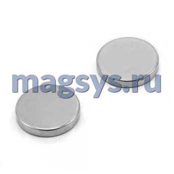 Магнит неодимовый диск 15х1.5 мм N35 никель по низкой цене, доставка по Москве и РФ.
