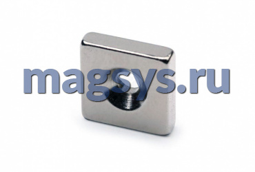 Магнит неодимовый блок 20х20х3 мм N35 никель с отверстием 3,5х7,5 мм (зенковка) по низкой цене, доставка по Москве и РФ.