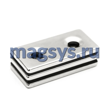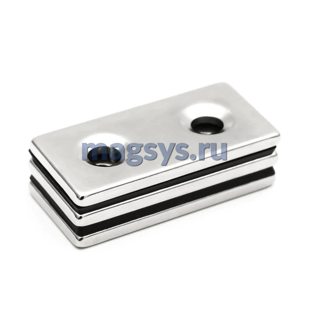 Магнит неодимовый блок 25х12х3 мм N35 никель с отверстием 3,5х6,5 мм (зенковка) по низкой цене, доставка по Москве и РФ.
