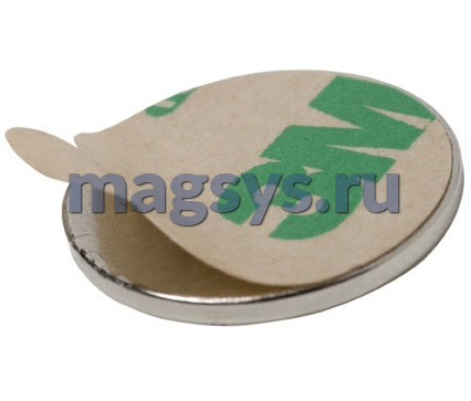 Магнит неодимовый диск 15х1 мм с клеевым слоем 3M N35 никель по низкой цене, доставка по Москве и РФ.