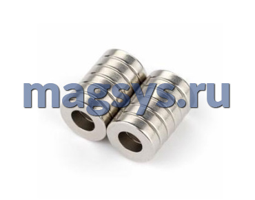 Магнит неодимовый кольцо 15х10х6 мм N35 никель по низкой цене, доставка по Москве и РФ.