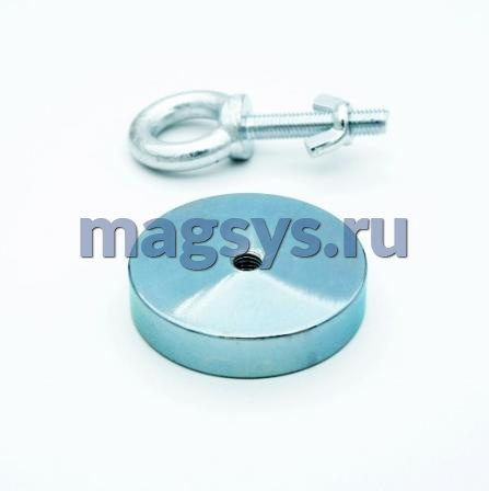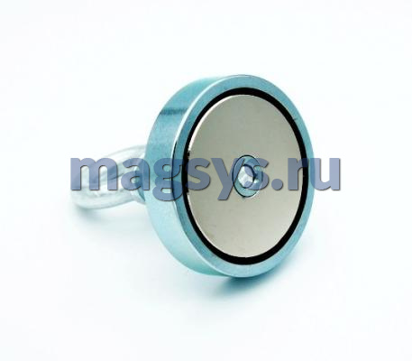 Поисковый магнит F200 (односторонний) - это полноценная магнитная система с замкнутым магнитным полем. Магнитные сердечники помещенные в стальной корпус в сравнении с простыми магнитами обладают повышенными магнитными свойствами. Относительная сила на отрыв данного изделия 200 кг + (Значения зафиксированы при отрыве магнита под углом 90 от стального листа толщиной 12 мм)