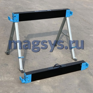 Надежность: прочная стальная конструкция обеспечивает высокую грузоподъемность (до 500 кг или 1000 кг на пару) и устойчивость козлов даже при работе на неровных поверхностях.