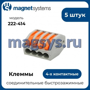 Клеммная колодка 4-х контактная из серии 224 с нажимным рычагом для медных одножильных и многожильных проводников. Изготовлена из пластика, две половинки корпуса фиксируется на защёлках, рычаги, внутри скобы которые зажимают провода при опускании рычагов. У этого способа скрепления есть ряд преимуществ: высокая скорость соединения, надежность и удобство дальнейшей работы с проводами, их обслуживания.