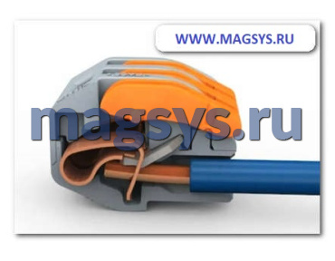 Клеммники 222 ой серии выполнены полностью изолированными, что дает дополнительную защиту от случайного прикосновения к месту соединения проводов.